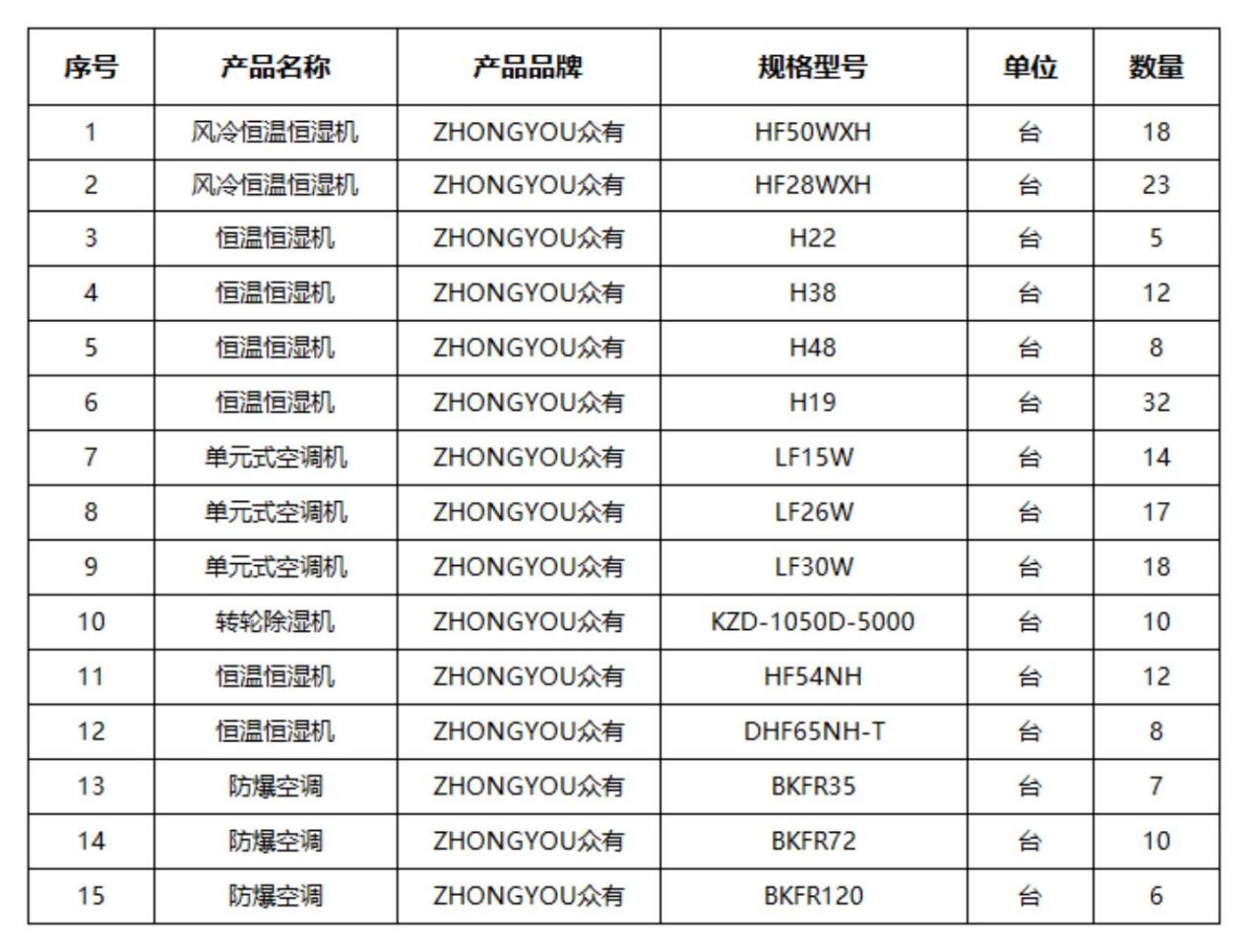 三澳核電選購眾有風冷單元式空調、恒溫恒濕機、轉輪除濕機、防爆空調