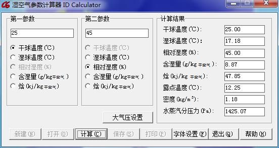 以空氣狀態點:干球溫度T=25℃ 相對濕度RH45%為例:
