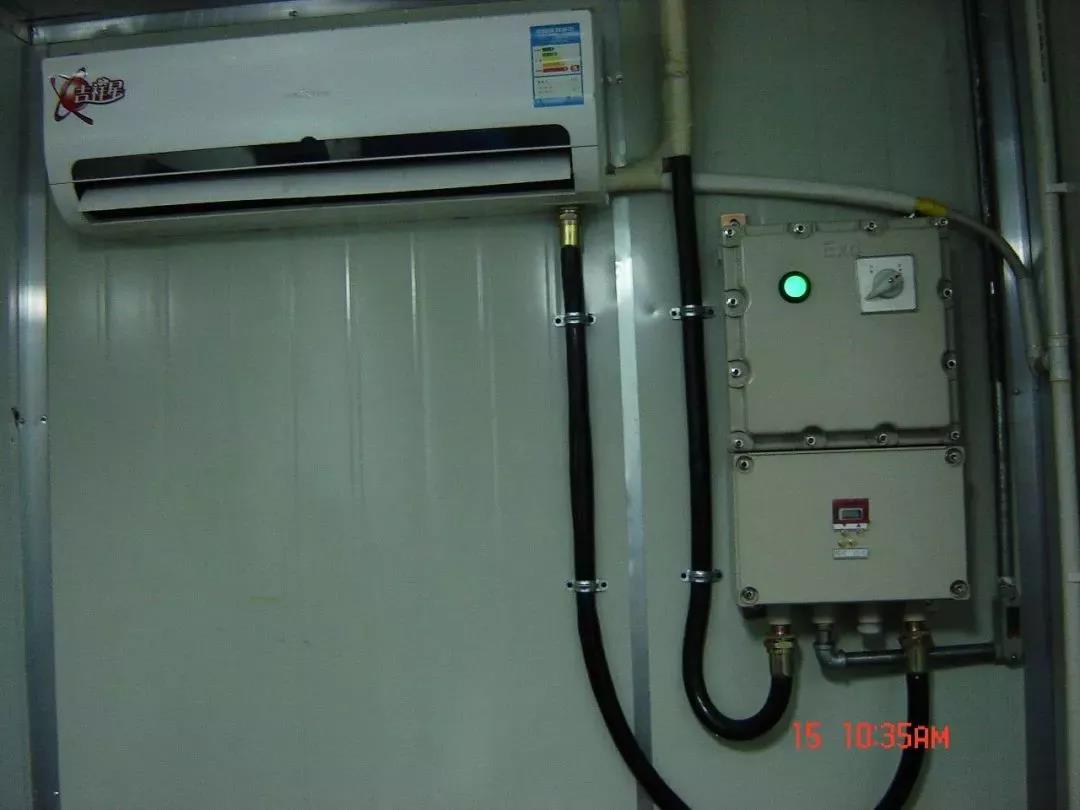 工業(yè)防爆空調(diào)保持普通空調(diào)基礎(chǔ)上,對(duì)電氣系統(tǒng),包括壓縮機(jī)、風(fēng)機(jī)、電氣線路進(jìn)行防爆處理。控制線路采用以光耦固態(tài)繼電器為核心的電氣制系統(tǒng)進(jìn)行整體防爆,原保持原來空調(diào)的基本功能下,簡(jiǎn)化結(jié)構(gòu),簡(jiǎn)化操作,使設(shè)備在性混合氣體環(huán)境中能安全使用。