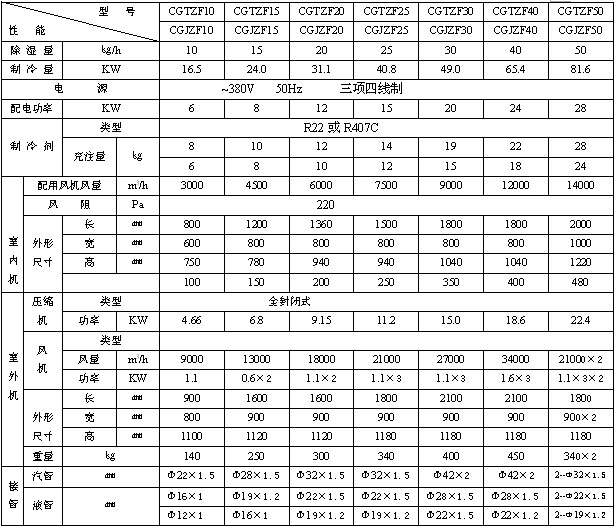“綠色”概念 機組采用滿足淘汰CFC工質國家方案要求的R22制冷劑,有利地球環境。公司亦可按用戶要求訂制R407c、R134a等HFCM質的除濕機。
