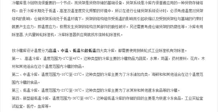 常規(guī)除濕機和管道除濕機均有升溫型、調(diào)溫型、降溫型三種功能類型,其中升溫除濕機主要用于除濕,無制冷功能,故適用于無溫度要求的除濕場所;調(diào)溫除濕機集除濕、制冷功能于一身,且制冷能力可調(diào),故特別適用于熱負(fù)荷變化較大的除濕場所。降溫除濕機在除濕的同時有制冷功能,但制冷能力不可調(diào),故適用于熱負(fù)荷較大,對相對濕度無要求的除濕場合。