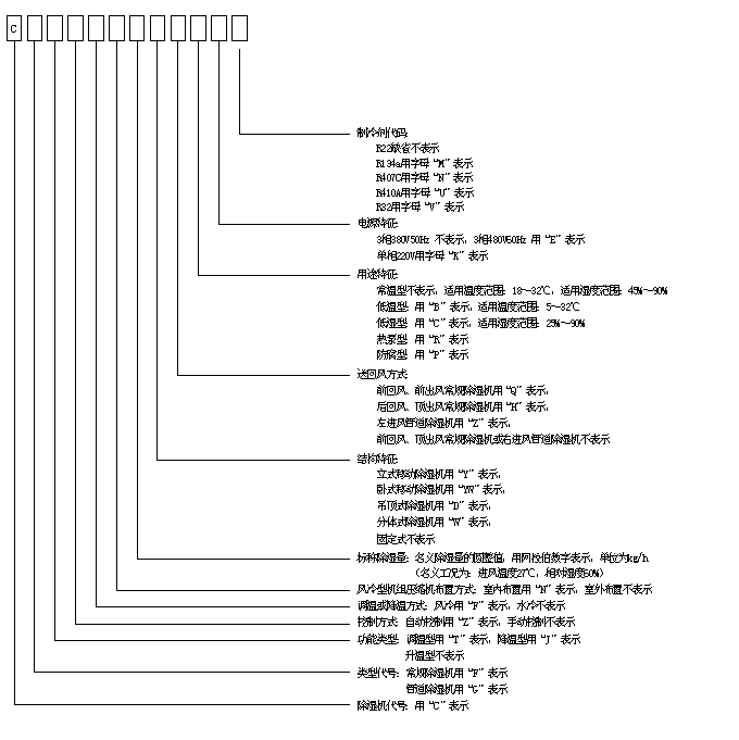 zhongyou/上海眾有除濕機產品型號表示方法